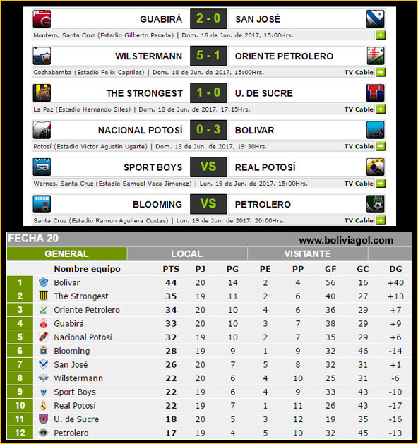 el Torneo de la L.F.P.B.; el miércoles 21 de junio, en el