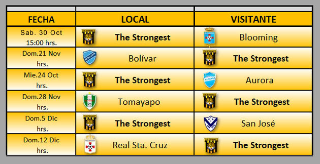 Strongest juega el próximo sábado 30 de octubre frente
